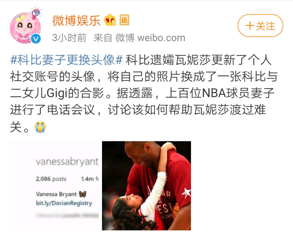另外我还看到瓦妮莎换了自己INS的头像,那是一张科比和GIGI的合照,她是在以这样的方式纪念他们,看到以后,真是很心疼,这个失去丈夫又带着三个女儿的妈妈,以后该怎么办?