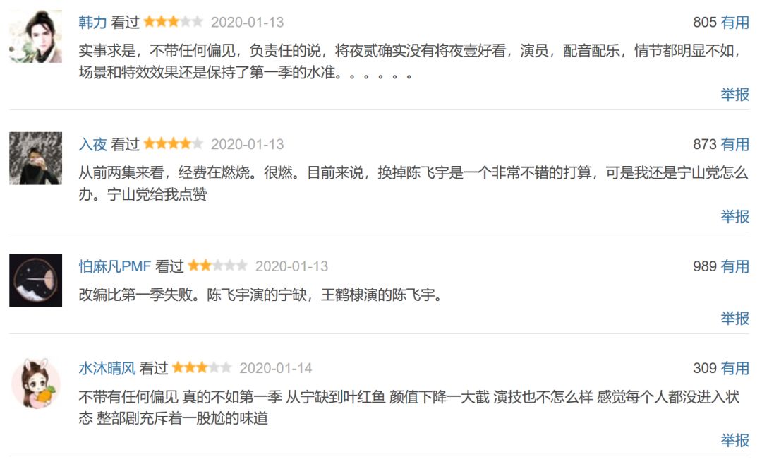正片出来之前,剧粉好歹能用“主创是原班人马”彼此安慰一下。但待到《将夜2》正式播出,粉丝发现剧作质量也出现了下滑,那确实没什么情怀好谈了。