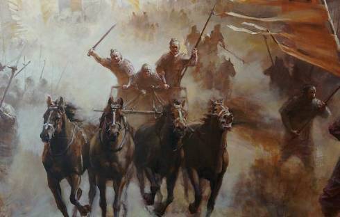 这是晋文公复国图,现藏于美国纽约大都会博物馆,为什么中国的国宝到了美国呢?我们下回再聊。卫国当然是拒绝的,于是,晋国先是朝着曹国做出进攻的姿态,走到半路,突然转向进攻卫国。这样一来,几乎所有的大国都牵扯进了这场大战。很快,晋文公攻下卫国、曹国,但楚国并没有动,没有上晋国的当,依然围攻宋国。这个时候,晋文公想了另一个办法:让宋国送礼向秦齐求救,请他们做东,跟楚国谈判讲和。局势僵持不下,正是因为秦齐两个大国在看热闹,出工不出力。那如果让宋国送礼,让秦齐出面讲和,那就好多了,而且只是要求讲和,春秋国家,还是很喜欢当和事佬的,因为这是体现大国地位的象征。