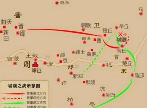 果然,楚国的使者被扣住,卫曹两国根本不知道楚国在救他们,而晋国私下悄悄答应让他们复国,让他们感激万分,纷纷表示脱离楚国。加入晋阵营。消息传出,楚国的子玉终于愤怒了。而通过一系列的运作,晋国成功把自己的敌人卫曹两国变成了盟友,把秦齐两个酱油党拉下了水,又调动了楚军。最后战胜楚国,成为春秋的霸主国。