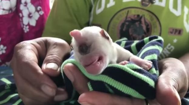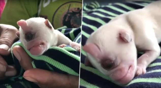 近日,泰国中部就诞生了一只独眼小奶狗——凯文,小凯文出生时,由于基因突变,它只长了一只眼睛,而且还是在正中间的位置。
