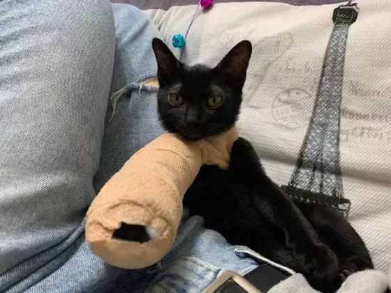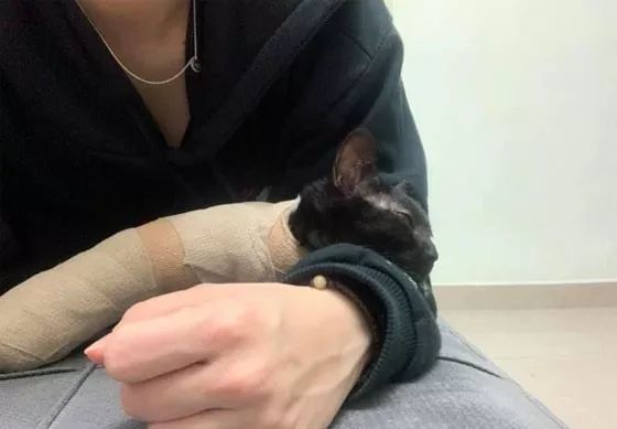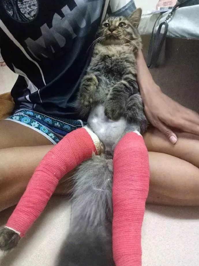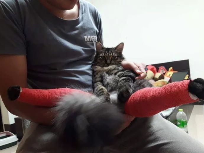 不愧是猫猫,就连打上石膏,看起来来都莫名的可爱。