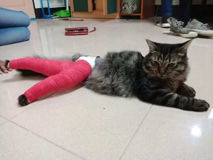 果然单身久了,看只骨折的猫,都觉得格外帅气