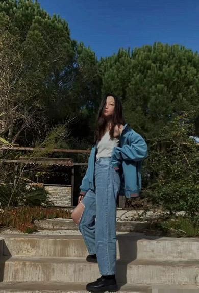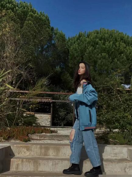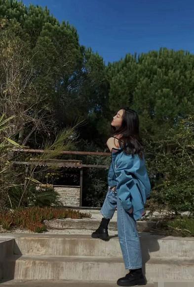 照片中,李嫣身处一处满是绿植的户外,许久未露面的她衣着时尚又复古,一件白色的吊带针织上衣,搭配蓝色休闲外套,下身穿了一条破洞牛仔裤,整体打扮性感十足。不得不说,在这个天气还敢露出肌肤,小姑娘果真不怕冷。