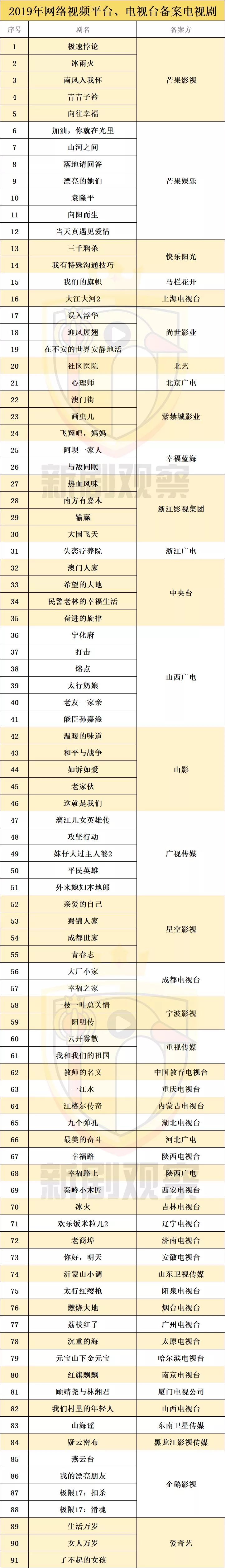 湖北、陕西、内蒙古、辽宁、吉林、黑龙江、河北、安徽、山东、山西、福建等11家二三线省级广播电视台,以及重庆、广州、西安、济南、烟台、太原、哈尔滨、南京、厦门、阳泉等10家市、地方广播电视台下属影视制作单位,也在2019年各备案至少一部电视剧。