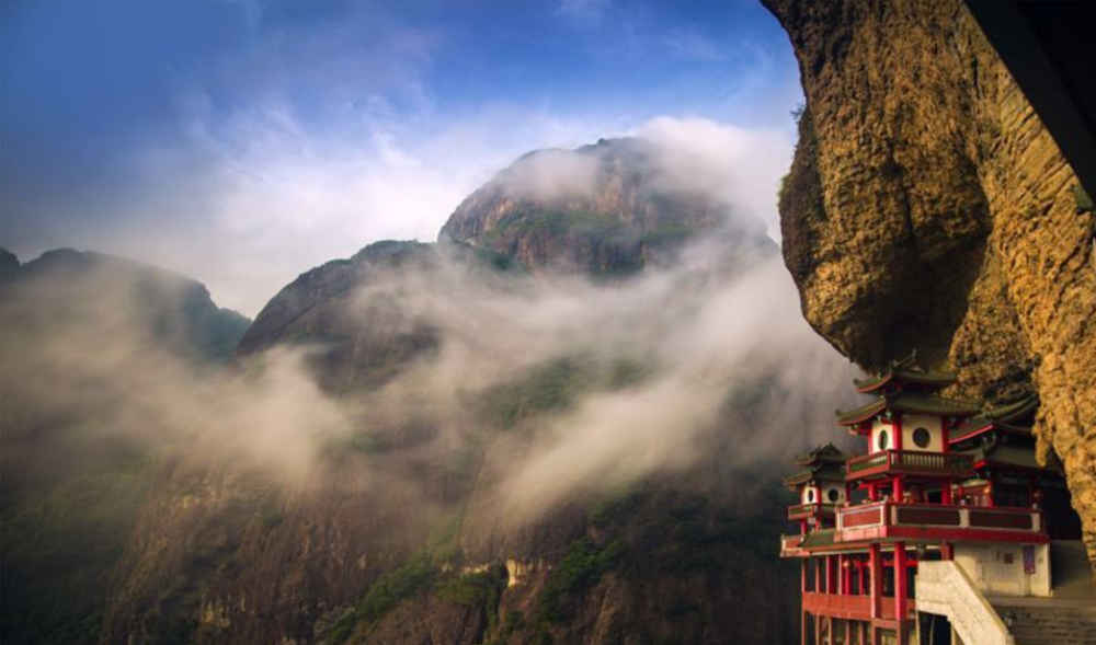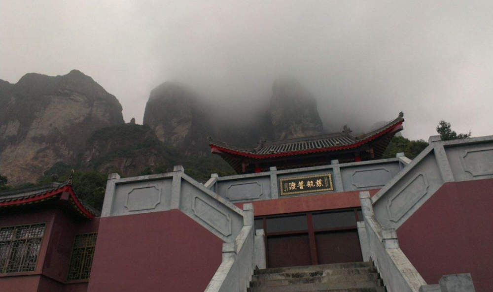 在灵通山景区,最著名的是三大奇观,其中第一大奇观就是灵通寺,灵通寺还有一个别称叫作“悬空寺”,之所以这么说,是因为灵通寺被建造在灵通山的半山腰一个山洞之中,上面是磐石,下面就是悬崖,这是一个难度极高的建筑,因为在半山腰的缘故,所以从远处看去,灵通寺就像是悬浮在半空中一样。