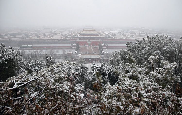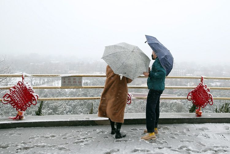 新京报讯 2月14日,情人节,北京大雪纷飞。因新冠肺炎疫情影响,景山游客很少,但仍有浪漫的情侣一起赏雪。