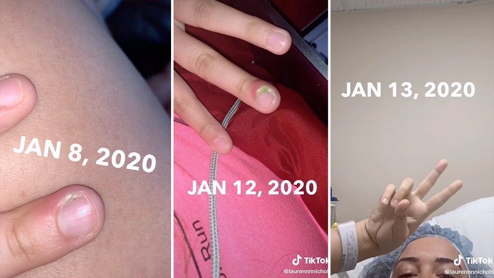 现年18岁的劳伦·尼克尔斯(Lauren Nichols),来自美国德克萨斯州(Texas),上个月她在社交网站分享了一个记录她经历的视频。这段视频的点击量已经超过了230万次,视频详细解释了她咬指甲感染病毒后的情况。