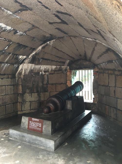 暗炮洞后面由一条2米宽的露天炮巷沟通,炮巷后面还有一条相距2米多的护墙,墙上设有枪眼,万一敌军上岛仍可以坚持抵抗。炮台内围有官厅1座,神庙3间,兵房12间,药局1座,码头1个。原来炮台的东西两头各有夯顶城门1座,控制着炮台两端唯一的通路。整座炮台背山面海,内有广阔的平地回旋,结构严谨,险要壮观。