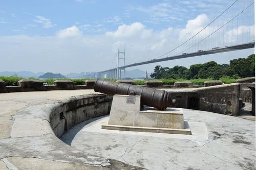 威远炮台,位于广东省东莞市虎门镇穿鼻洋北武山脚下,南山炮台前滩岩石正中。和镇远、靖远两炮台形成一"品"字,并与横档、永安、巩固等炮台构成鸦片战争时期虎门海防的第二重门户。威远炮台是鸦片战争古战场遗址之一、虎门海口防务的主要阵地,也是中国保留得最完整、最有规模的古炮台之一。1982年公布为全国重点文物保护单位。