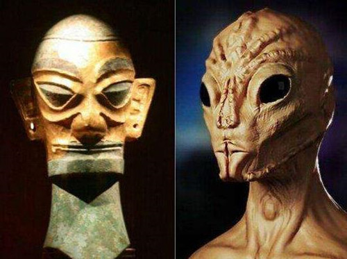 其实这可不是什么外星人长相,根据史学家的考证,当时蚕丛的家乡一带地理环境特殊,所以那里的人普遍患有甲亢病,出现眼睛朝外突出的情况并不奇怪。只不过蜀王真实的样貌肯定没有这么夸张,这个面具是进行了艺术加工的。