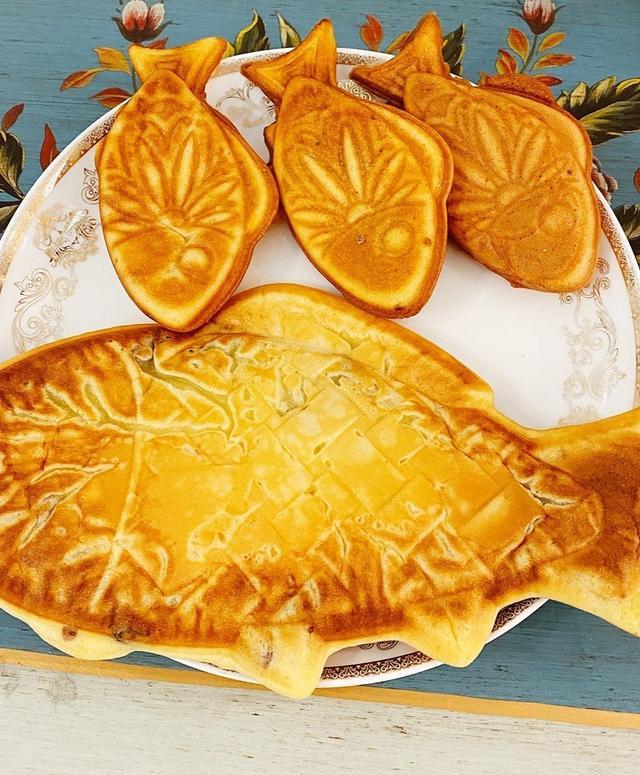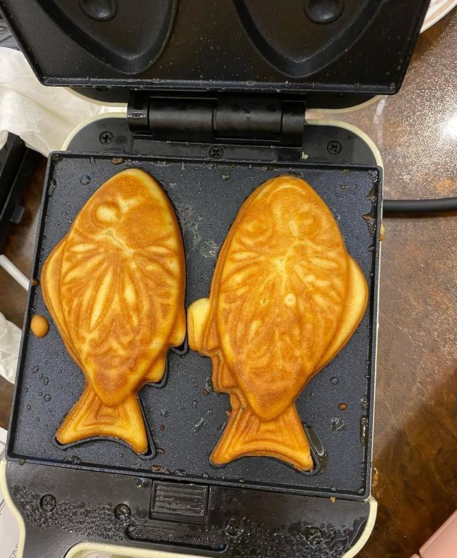 最后是鲷鱼蛋糕,红豆沙馅儿的,这个此前李小璐有分享过,而且还是甜馨亲自打蛋液,看起来也很美味。