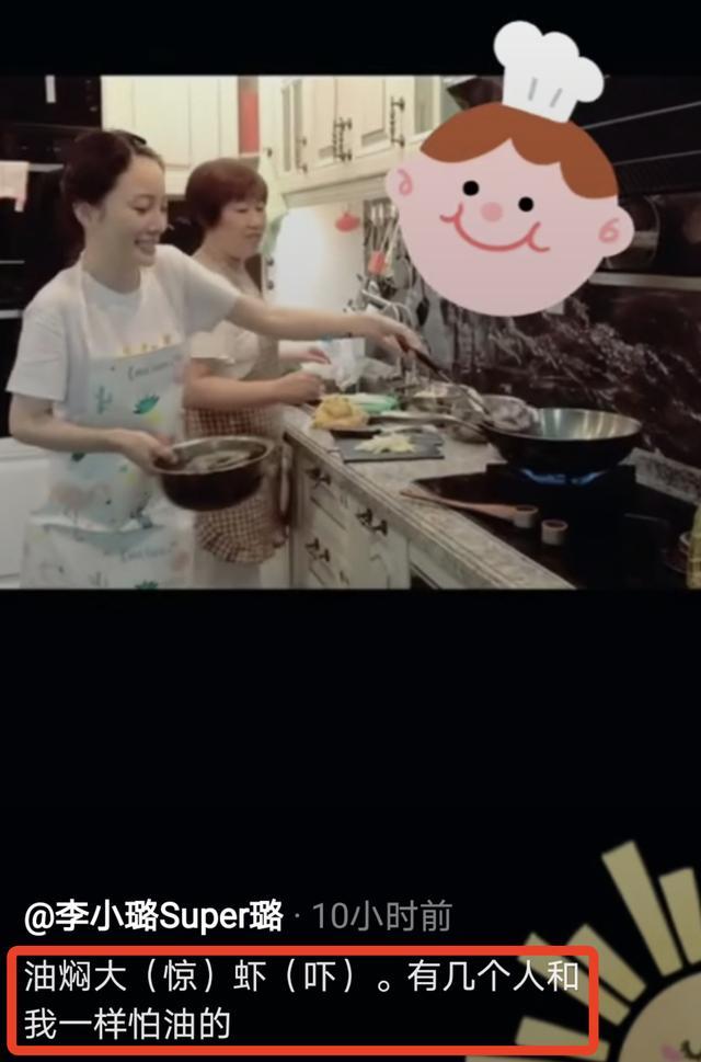 另外,李小璐在另一个平台上还晒出了自己亲自下厨的画面。李小璐在做油焖大虾的时候,被吓得花容失色,还问粉丝们:有几个人和我一样怕油的?