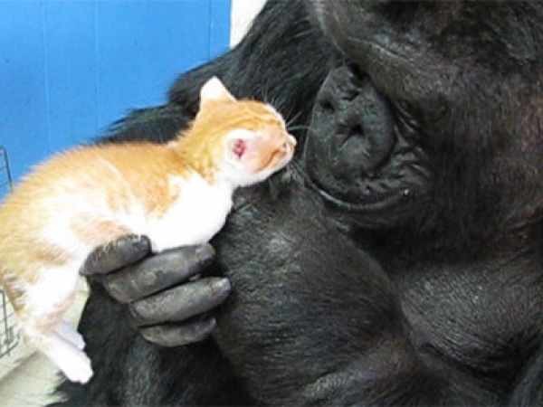 大猩猩科科是历史上研究最多的灵长类动物之一。 她的管理人员一直在检查她出色的语言理解能力。 Koko使用美国手语进行交流,并以使用已知的手势(例如,将戒指称为“手指镯子”)来为新商品和创意创建自己的用语而闻名。 1984年,科科问她的教练员是否可以允许她养宠物猫。 她选择了一只灰色的小猫,并将其命名为All Ball。 Koko抚养着All Ball就像是一只大猩猩一样,与之分离时会感到痛苦。 “皱眉”形容她的感受。 此后她又养了几只宠物。