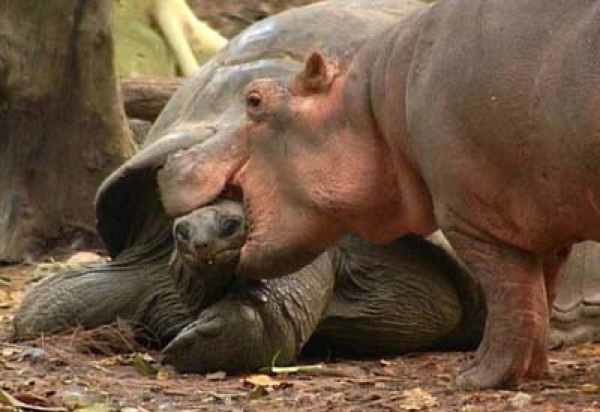 海啸浪将河马欧文与父母分开时,他被赶出了大海。 被野生动物护林员发现后,他被带到肯尼亚蒙巴萨的一个动物保护区。 欧文的管理员决定,他将与一个拥有100年历史的古老乌龟Mzee共享一个栖息地。 据报道,欧文对待男性Mzee表现得好像乌龟是他的母亲。 河马和乌龟会一起洗澡和睡觉,欧文会舔Mzee的脸,并在有人接近乌龟时变得有保护作用。 河马一般与母亲在一起待了四年,而欧文则在Mzee待到2007年,当时他被介绍给其他河马。