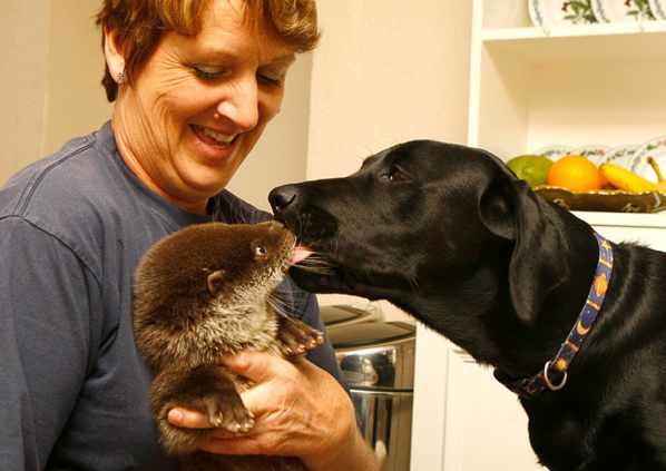 当发现一只水獭幼崽被遗弃在威尔士的一个建筑工地上时,被带到野生动植物保护区进行喂养和治疗,并恢复健康。 目的是治愈水獭,并再次释放他。 在保护区待了几个月后,幼犬的处理者决定他需要一个玩伴,以耗尽他的一些精力旺盛的能量。 由于水獭咬得很脏而且非常好奇,因此认为幼犬的最佳玩伴是一只小狗。 一只叫莫莉的八个月大的拉布拉多被带进来,两人一起玩耍,而水獭被教导要游泳。 名为Geraint的水獭将在不久的将来发布