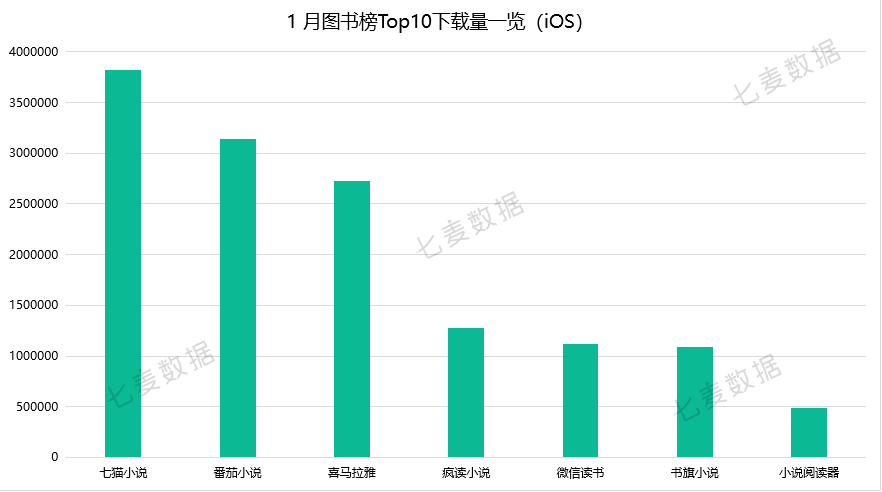 在宅人群迅速增长的条件下,图书类产品在此期间也表现不俗,闲时经济引发的阅读消磨时间的需求也随之增长,七猫小说、番茄小说等 7 款产品均在 1 月稳居 Top10 以内。
