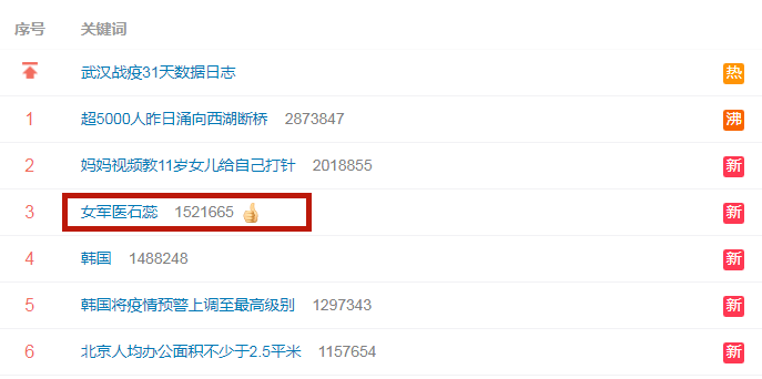 一位名叫石蕊的军医登上了微博热搜榜