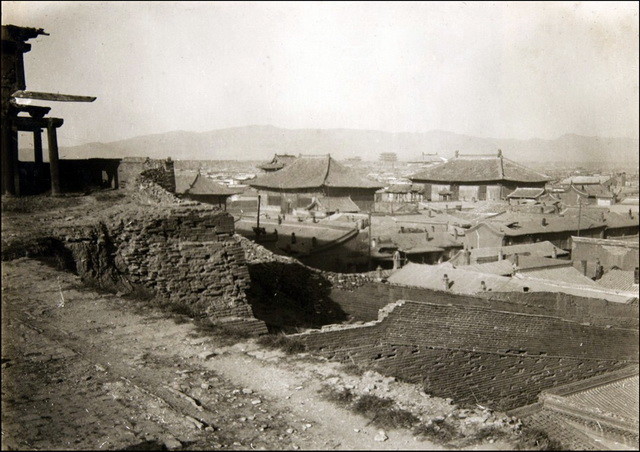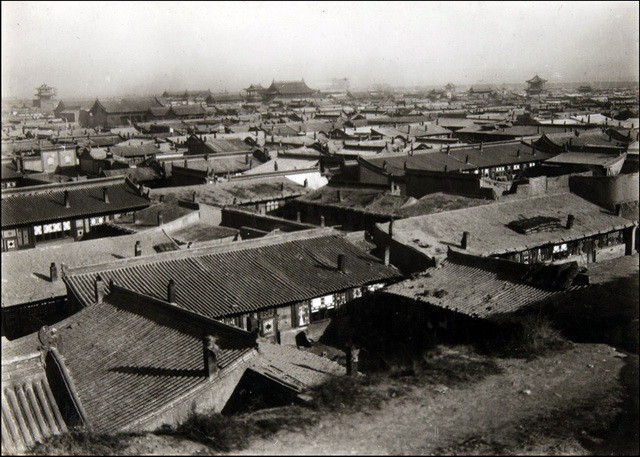从城楼上远眺的城市风貌,重楼高阁,排列整齐且气度森然。