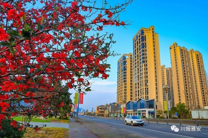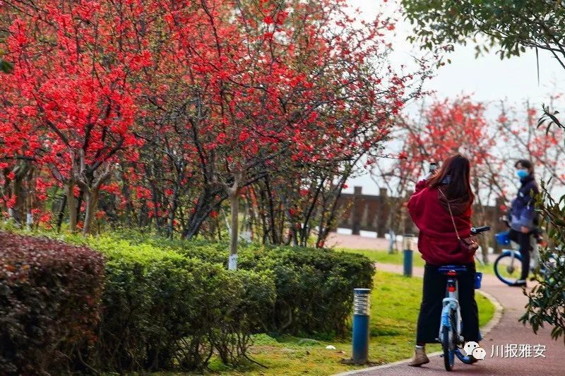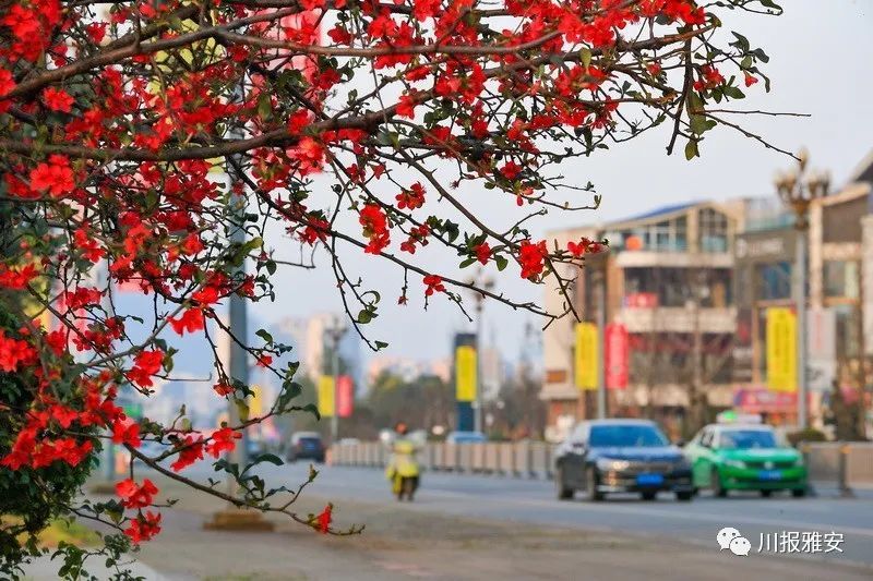海棠被誉为“国艳”,素有“花中神仙”、“花贵妃”、“花尊贵”之称,是自古以来雅俗共赏的名花。据了解,雅安市区街头的海棠主要为贴梗海棠,花瓣色泽红润,娇艳欲滴,花期可持续到3月下旬。