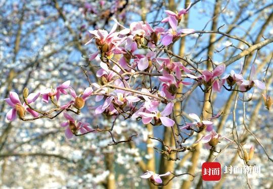 咔、咔、咔……看到漫山的辛夷花,游人们拿出手机记录下这一美景。“太美了!”游客黄女士高兴地说,因为疫情,好久都没有出过门了,今天天气好,就带家人到这里透透气,吹吹风,也希望疫情早点过去。