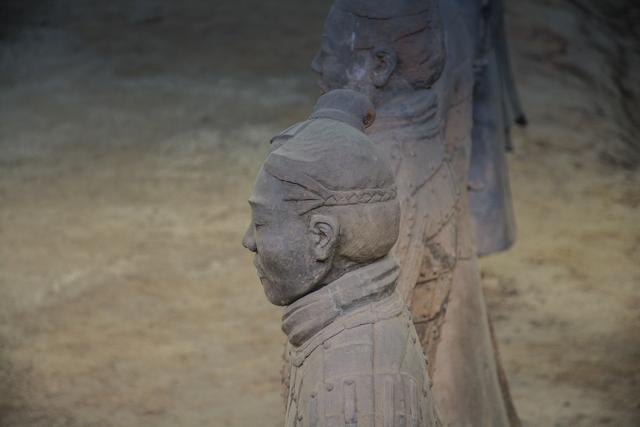 目前开放的展厅有一号坑、二号坑、三号坑,其中以一号坑最为雄伟壮观。一尊尊形象逼真、表情各异的人佣,仿佛真人一般栩栩如生。一号坑的前半部分展示的是已经修复好的人佣,而后半部仍然有些在修复进行中。也纠正了一个错误的主观意向,一直以为兵马俑出土就是完好的站立的,原来都是考古工作者一点一点修复出来的,非常不容易。前人造佣开创纪元,后人修佣同样载入史册。