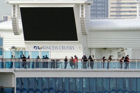 ▲“钻石公主”号邮轮上的乘客(共同社)