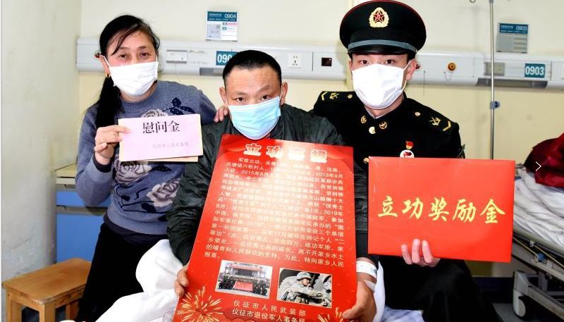 杨普森立功事迹和家庭困难情况上报到仪征市委和市政府,市委王书记深受感动,批示安排组织军地“登门送喜”和“纾难解困”。