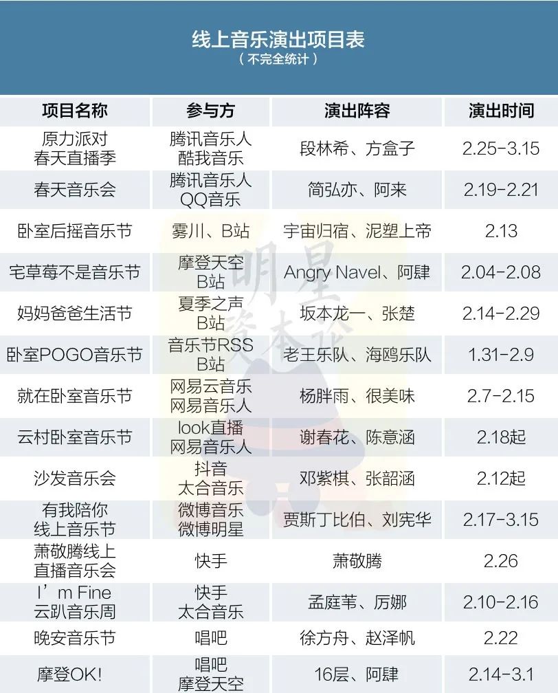 但疫情让大众的线上娱乐需求日渐上扬,具有敏感嗅觉的平台开始联合音乐公司以及音乐人,共同筹备线上演出项目并快速上线。