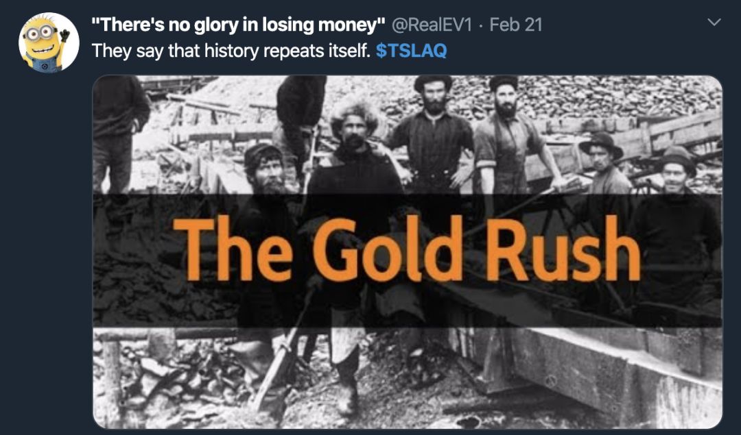 网友讽刺特斯拉引发了新一轮的「淘金热」 | Twitter @RealEV1