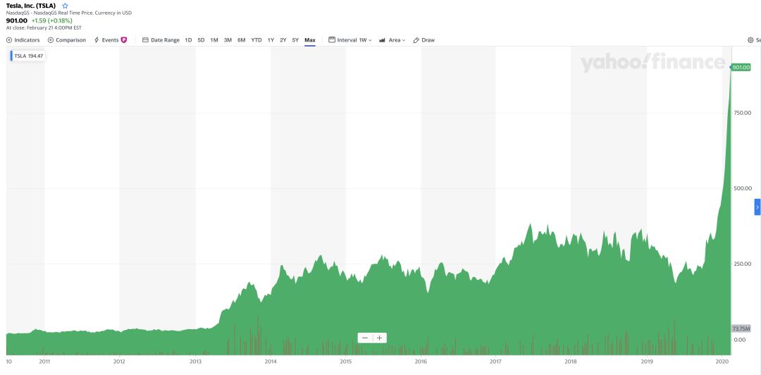 「这表明该公司在其最大也是最重要的市场中没有商业动力。实际上,特斯拉在 2019 年全年的美国收入比 2018 年减少了 14.9%。从特斯拉股票的股价走势图来看,没有人会猜到这一点。 」市场分析师 Jim Collins 说。