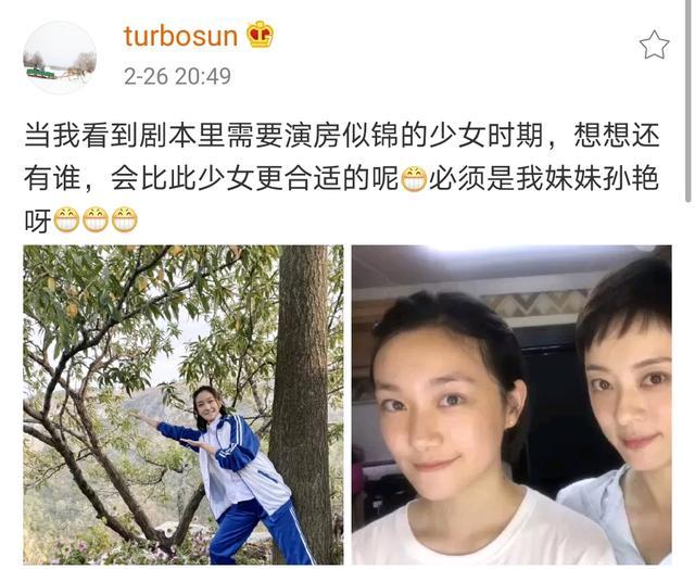最近剧情发展到了对儿时的回忆,孙俪保养得再好,也没办法像刘晓庆那样演十几岁的少女,所以自然要找小演员了。2月26日晚上,孙俪便在社交平台上分享了和亲妹妹的合照,并爆料称:当我看到剧本里需要演房似锦的少女时期,想想还有谁,会比此少女更合适的呢?必须是我妹妹孙艳呀!