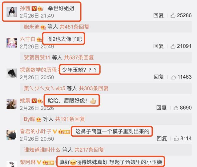 其他网友则纷纷感慨姐妹俩长得像,还有不少小伙伴回忆起了《甄嬛传》里的小玉娆。