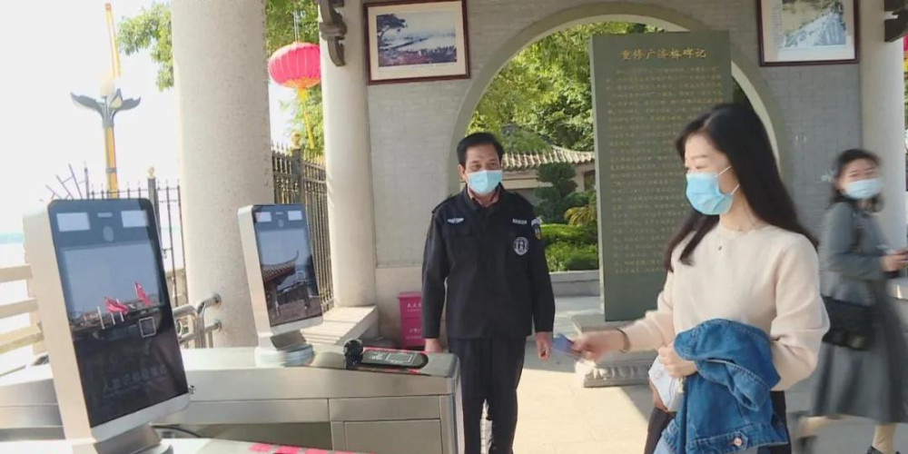 上午记者在广济桥看到,入口处设置了体温测量点,进入景区人员必须佩戴口罩测量体温。工作人员积极引导游客到自助售票机购票,游客凭门票到闸口扫二维码直接通过,实现无接触上桥参观。