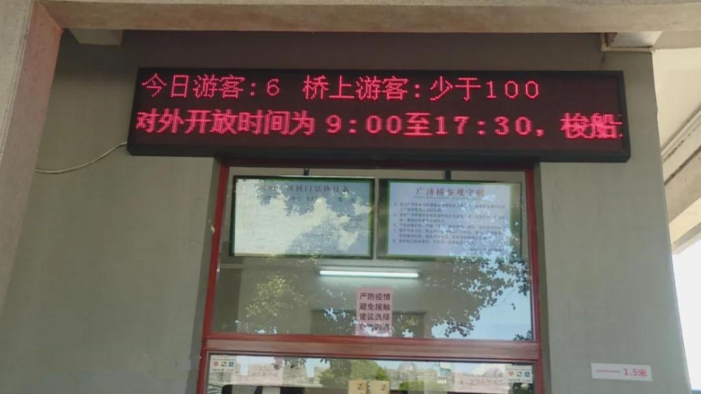 广济桥景区严格按照相关防疫指引,做好景区环境卫生跟桥面全面消毒的工作,我们也采取限流的措施,当桥上游客达到瞬时最大承载量,960人的50%的时候,我们会暂停售票,以此确保游客有安全距离。