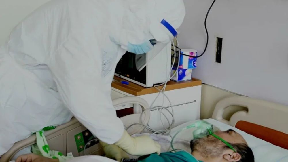 刚才那个防护服可能穿得太紧了,刚才勒得太紧了,没事,没事。就是缺氧,窒息,里面因为口罩湿了,一直感觉喘不上气来。