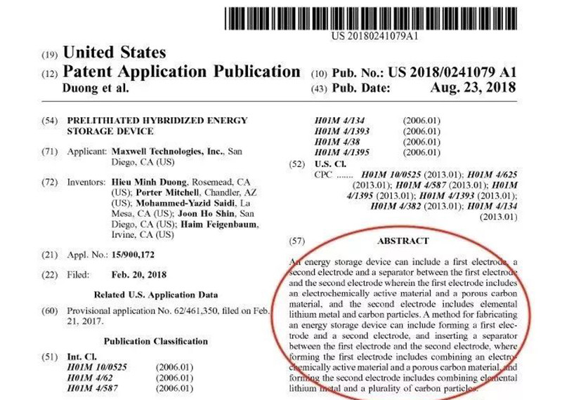 而此前,Maxwell有一项待审专利正是将锂离子补充至电池负极,这项专利技术将能够有效缓解电池在使用过程中的容量衰减问题。而随着特斯拉完成对Maxwell的收购,这项专利技术也自然转移到了特斯拉的名下。