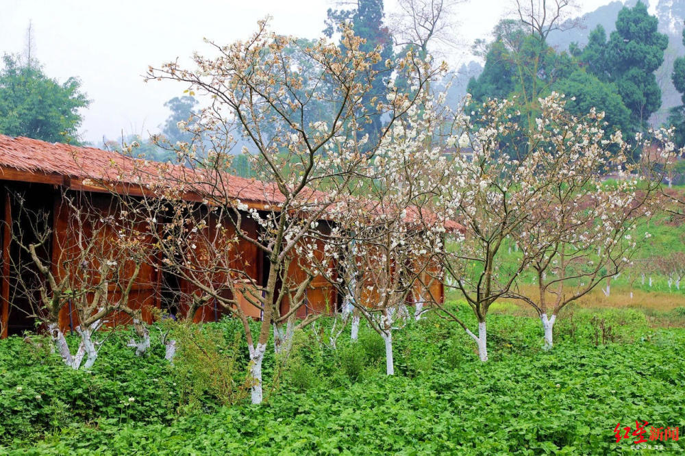 另外一个受市民关注的是新津的梨花溪景区。目前由于时间和天气的原因,梨花还藏在枝头。一树又一树竞相盛开的,是密密匝匝的李花。雪白的花瓣轻拥着黄色的花蕊,树下落英缤纷。