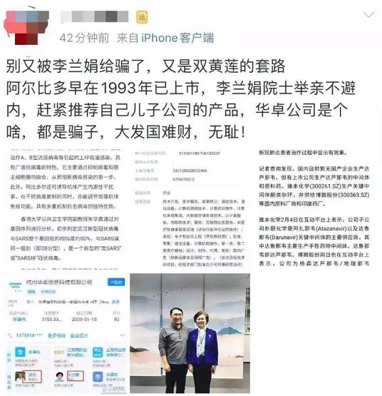 实际上,阿比多尔和达芦那韦都是老药,不是刚刚研发出来的,也跟李兰娟儿子的公司没关系。