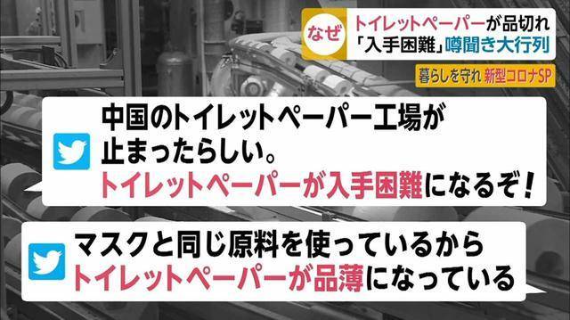 新生堂药店的店长森山对媒体说,一般店铺中午之后就无法再买到厕纸,同时也有利用这一缺货情况,在二手市场高价倒卖的。他问顾客为何要抢购厕纸,被告知是网上看到了与新冠肺炎相关的传闻,因此急忙来买。