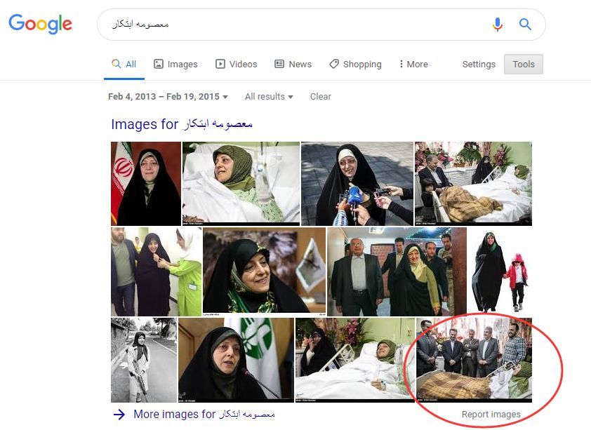 接下来,为了进一步验证网传的那张图片,是2014年伊朗这位副总统遭遇车祸后,在医院接受探望的场景,我们又使用谷歌搜索引擎将搜索的时间范围设定在2014年,并使用伊朗这位副总统的波斯语名字进行了搜索,并顺利找到了如今网传的那张图片。