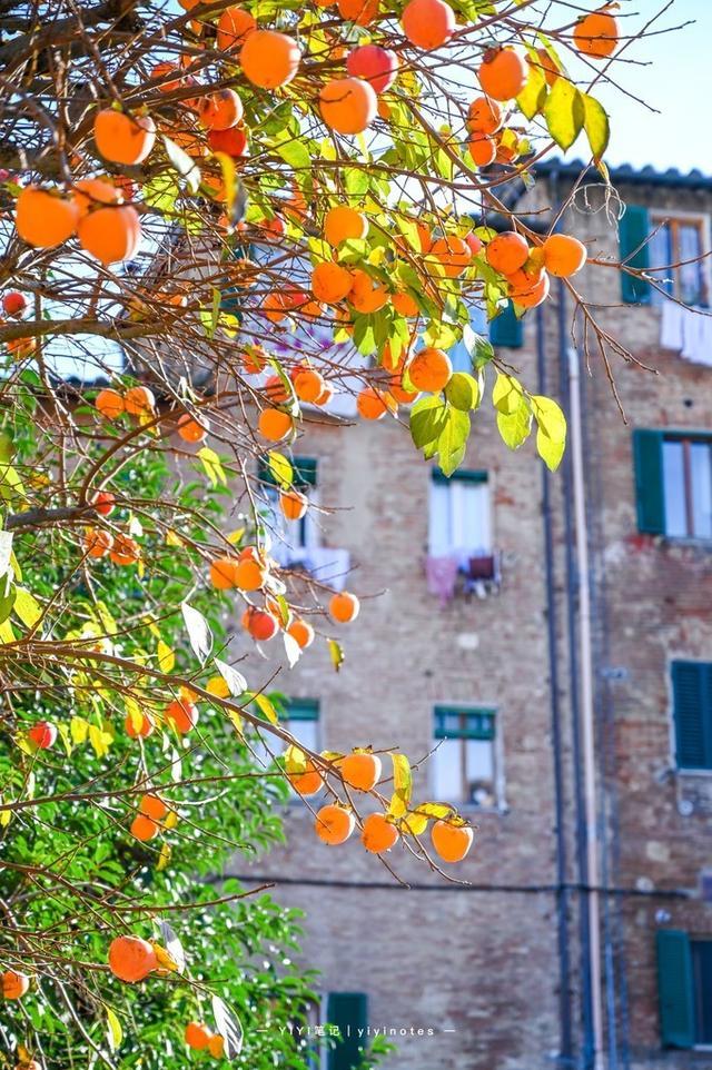 晴空万里的锡耶纳,路边还有结满果子的柿子树,在阳光下有点文艺。几个世纪以来,这座老城的哥特式建筑风格,没有巴洛克的奢华但足以堪称为一件精美的艺术品。