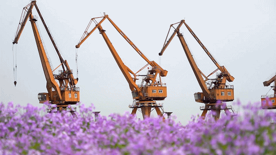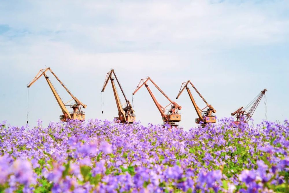 最神奇的是,这片花海背后,5座塔吊岿然耸立,跟花海浑然天成。工业复古混搭田园牧歌的神奇景点,仅此一处!