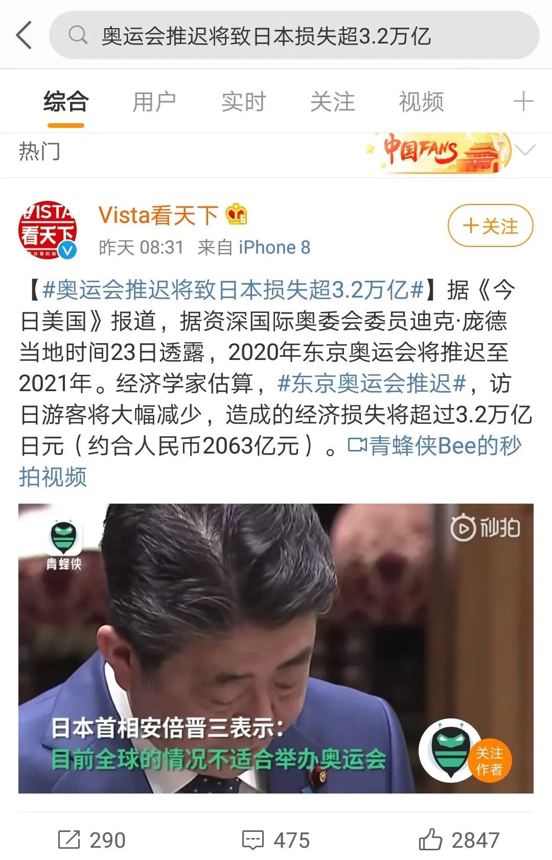 据经济学家估算,此次因东京奥运会推迟,对日本经济造成的损失将超过3.2万亿日元,约合人民币2063亿元。此前,日兴证券曾给出东京奥运会取消将造成的经济损失预计为5320亿元(750亿美元),相比之下,奥运会延期已经是目前的最优解。
