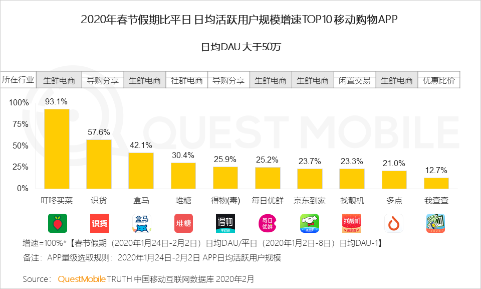 疫情期间,买菜APP的火爆并不令人感到意外,但很少有人注意到,潮流电商的增长紧随其后。根据QuestMobile的数据,春节期间,得物App的平均日活用户飙升了25.9%。作为潮流单品最主要的子类,潮鞋的交易情况具有相当的代表性。