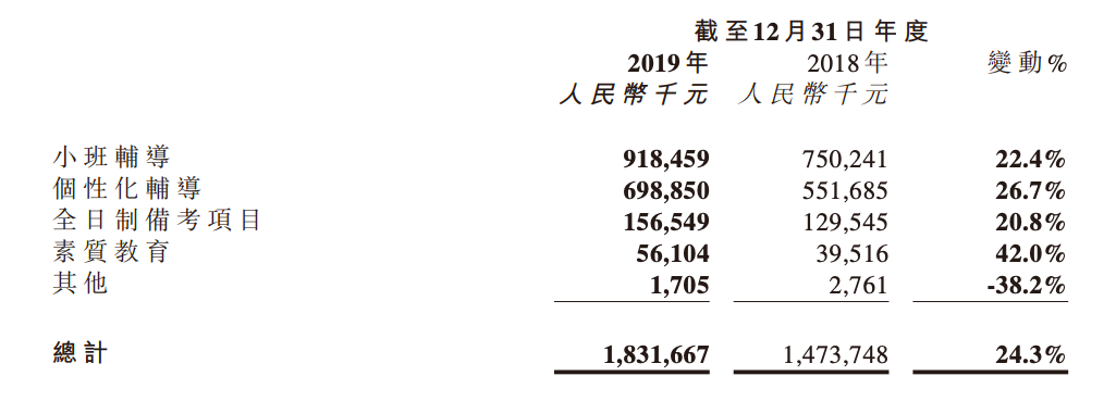 收入构成来看,小班辅导和个性化辅导占主要,其次为全日制备考项目(针对初三高三复读生)。