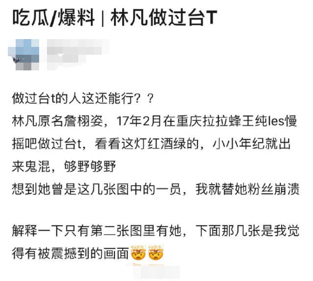 而就在申冰因当小三退赛后,有网友又扒出了学员林凡也被爆在重庆做过酒吧台T,不得不承认,《青春有你2》简直就是大型吃瓜现场。