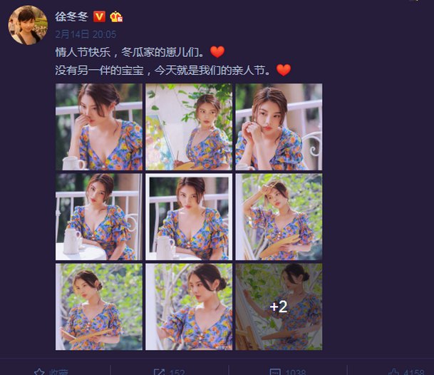 不过,徐冬冬在今年的2月14日,晒出了多张“男友视角”的照片,还安慰单身的网友们,称那天就是“亲人节”。