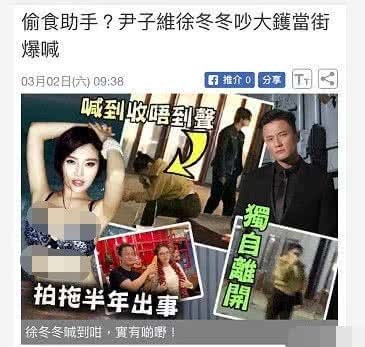 但两个人的个感情似乎并不是一帆风顺,港媒曾曝光过两个人当街争吵的画面,当时的画面中,徐冬冬坐在石凳子上掩面痛哭。而争吵原因被曝是因为尹子维出轨偷食女助理。