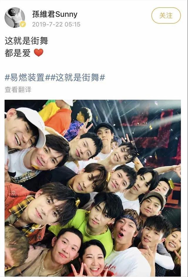 其二,照片。朋友圈中一张7月22号发布的照片与孙维君7月22号在社交媒体上发布的一张合照从角度来看一模一样,而这张合照是《这就是街舞》选手和易烊千玺的合影。